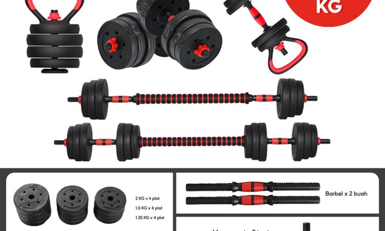Dengan satu set lengkap, Anda mendapatkan fleksibilitas untuk berlatih sebagai dumbbell maupun barbell, memberikan variasi latihan yang menyeluruh untuk seluruh tubuh. Kemasan satu set sudah termasuk segala yang Anda perlukan untuk memulai, menjadikannya hemat tanpa perlu membagi-beli komponen.
