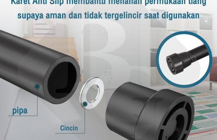 - Kaki Anti-Slip: Pipa baja dengan karet pengaman.