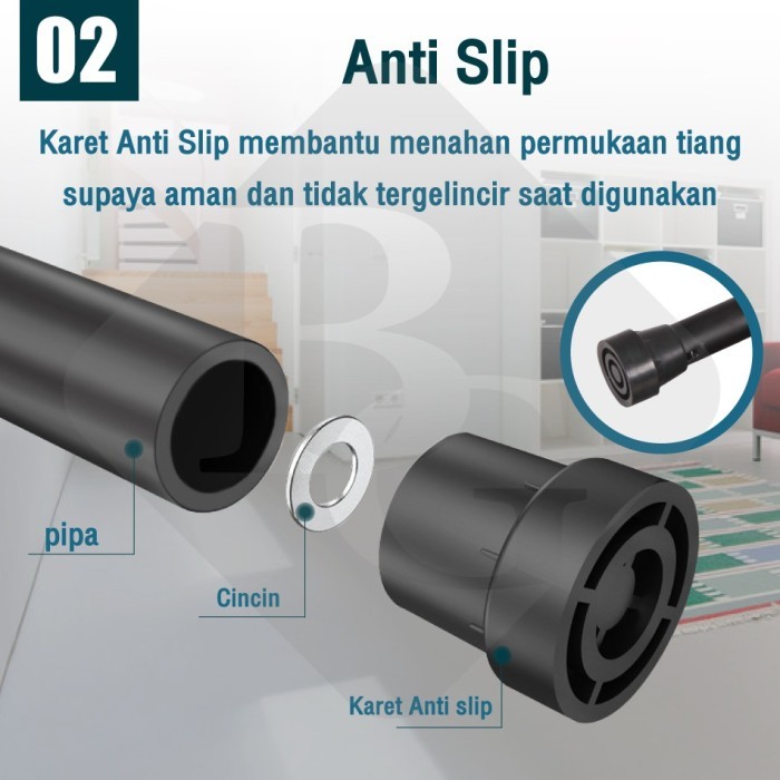 - Kaki Anti-Slip: Pipa baja dengan karet pengaman.