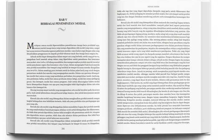 Buku ini tidak hanya membahas teori “invisible hand” yang legendaris, tetapi juga menjelaskan secara mendalam tentang spesialisasi tenaga kerja, pembagian kerja, serta peran investasi dalam menciptakan kemakmuran suatu bangsa. Dibandingkan dengan pemikiran ekonomi zamannya, gagasan Smith terlihat sangat revolusioner dan masih relevan hingga saat ini.