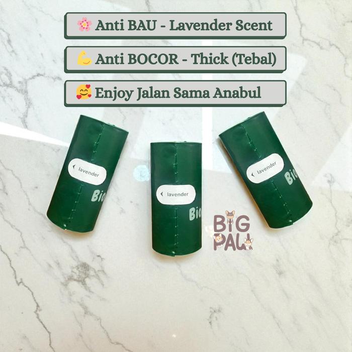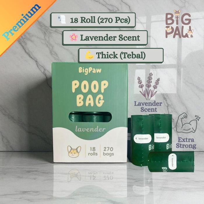Tuntut kebersihan yang lebih tinggi dengan Bigpaw Poop Bag. Dibuat dengan material premium berketebalan 15 micron, plastik ini sangat kuat dan extra strong untuk mencegah kebocoran. Aroma lavender yang menyegarkan efektif menetralisir bau tak sedap dari kotoran hewan peliharaan, popok bayi, hingga pembalut wanita. Desainnya ergonomis dan mudah dibawa ke mana saja, cocok untuk digunakan di rumah, mobil, atau tempat kerja.