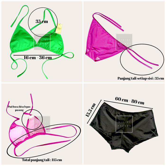 Raih penampilan percaya diri dengan koleksi bikini andalan kami. Desain klasik warna hitam polos yang timeless dan elegan, cocok untuk berbagai aktivitas pantai maupun kolam renang. Dibuat dengan material Nylon Spandex berkualitas tinggi yang sangat elastis (stretch), ringan, dan cepat kering. Lapisan katun pada bagian dalam memberikan kenyamanan ekstra dan kesehatan area sensitif.