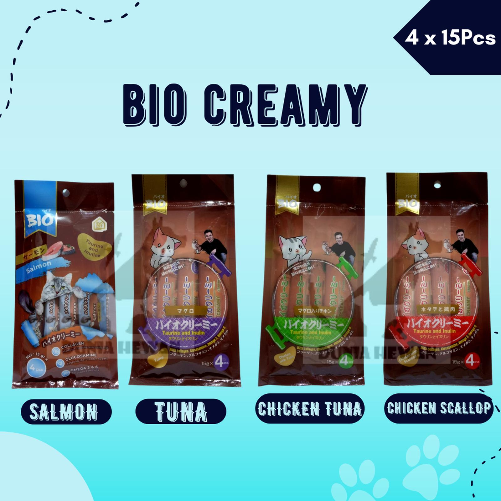 Berikan yang terbaik untuk kucing Anda dengan Bio Creamy, cemilan sehat dan penuh cinta!