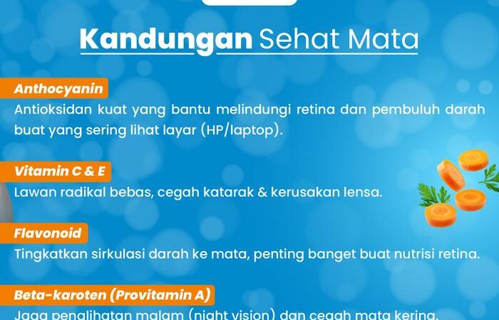 | Vitamin A | Nutrisi esensial untuk mencegah mata kering dan menjaga kornea tetap sehat. |