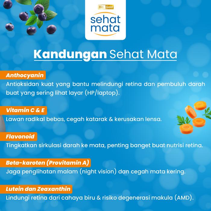 Dengan komposisi alami yang terjaga kualitasnya, Bio Gold Sehat Mata diformulasikan khusus untuk membantu meringankan berbagai gangguan refraksi seperti mata minus, plus, dan silinder. Produk ini telah terdaftar