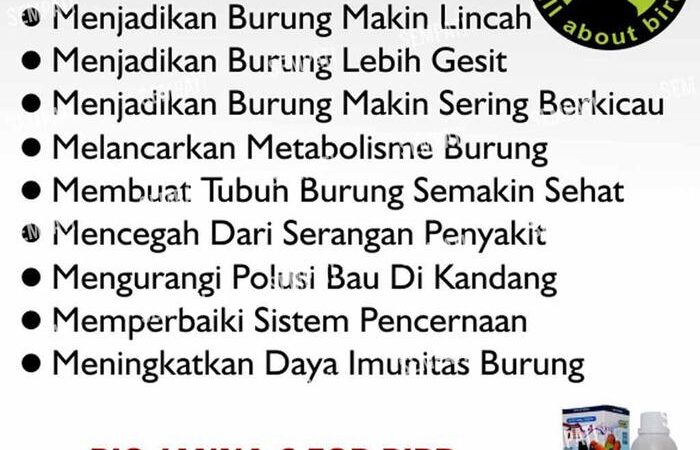 | Manfaat Tambahan | Menghilangkan bau burung & kandang, mengkilapkan bulu, mencegah penyakit. |