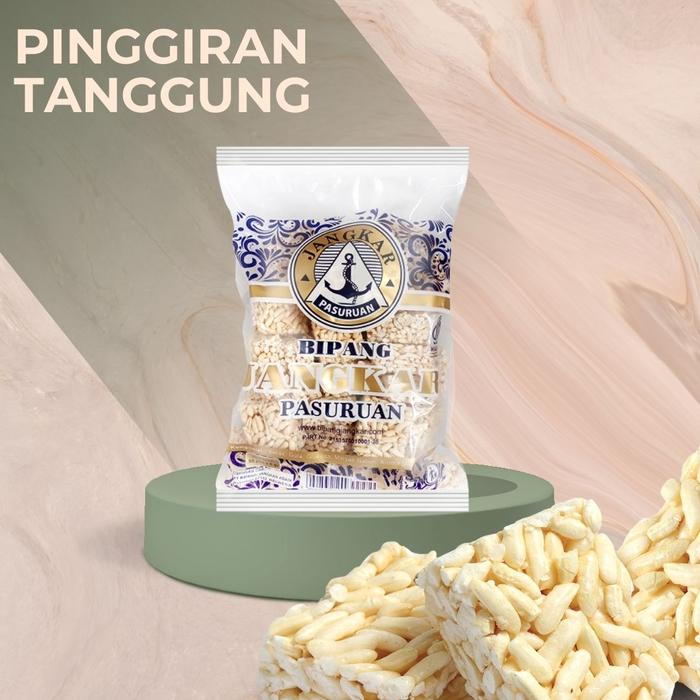 Bipang Pinggiran Tanggung adalah camilan renyah dan gurih berbahan dasar beras dengan sentuhan manis rasa vanila yang menggugah selera. Setiap kemasan plastik berisi 50 potong bipang berbentuk persegi dengan berat 6 gram per keping, cocok untuk dinikmati sendiri atau bersama keluarga dalam berbagai kesempatan.