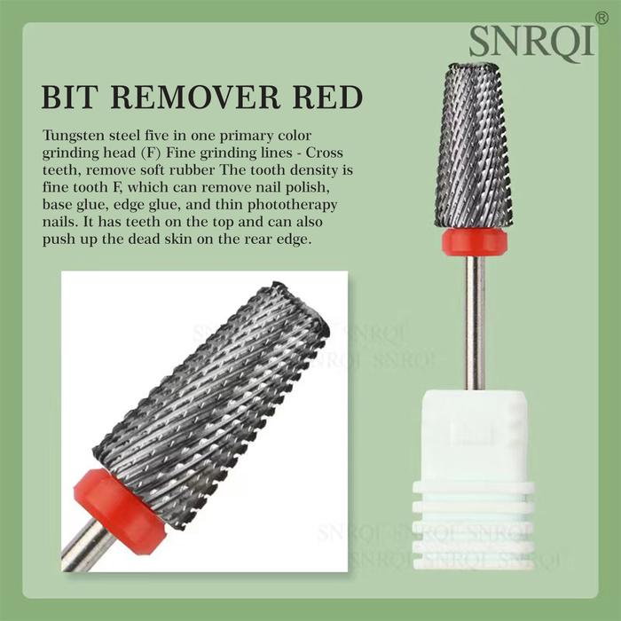 • Bit: Mata bor atau alat attachment yang dipasang pada mesin drill. Setiap bit memiliki bentuk dan fungsi yang berbeda, misalnya untuk memotong, mengikir, atau memoles kuku.