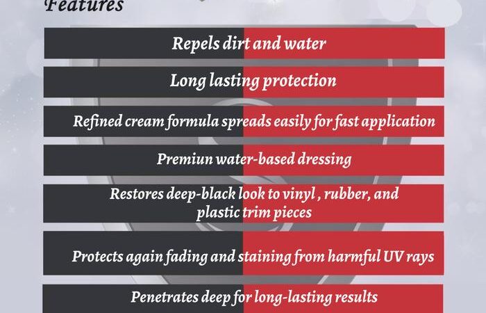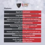 S-PRO PERFECTION SHINE DRESSING adalah solusi premium untuk mengembalikan warna hitam pekat pada trim plastik, karet, dan vinyl di kendaraan Anda. Formulasi cream yang refined mudah diaplikasikan dan memberikan hasil yang cepat serta maksimal. Produk ini tidak hanya mempercantik penampilan tetapi juga memberikan perlindungan jangka panjang.