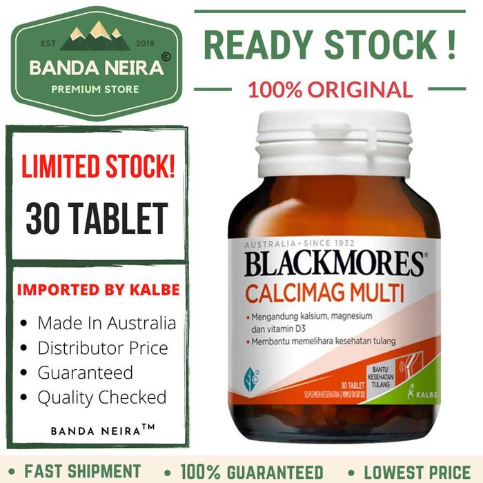 Blackmores Calcimag Multi diformulasikan untuk membantu memelihara kesehatan tulang dan gigi. Kandungan Vitamin D3 di dalamnya berperan penting untuk meningkatkan penyerapan kalsium secara optimal. Dilengkapi juga dengan Magnesium yang mendukung fungsi otot dan saraf, serta Vitamin K1 yang membantu mengikat kalsium pada tulang. Suplemen ini dapat membantu mencegah dan mengatasi gejala tulang rapuh (osteoporosis ringan). Diproduksi di Australia dengan standar kualitas tertinggi.
