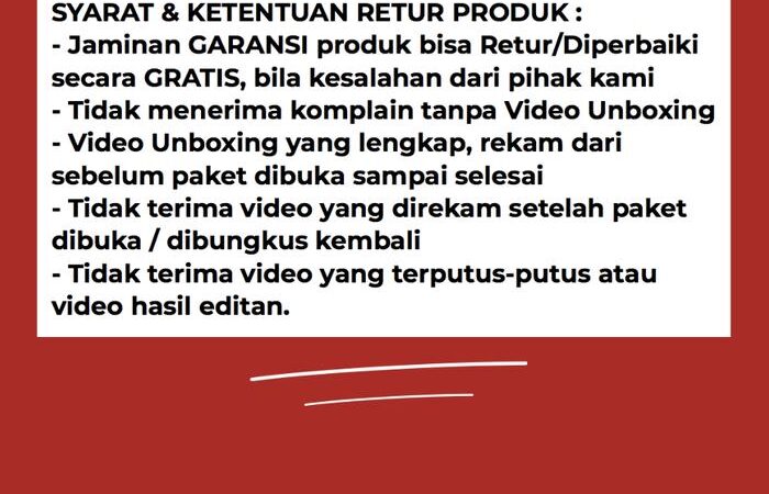 Peringatan: Seluruh foto produk merupakan hak cipta toko kami. Penggunaan secara komersial tanpa izin akan diproses secara hukum. Bagi reseller/dropshipper, harap konfirmasi terlebih dahulu sebelum menyebarkan foto produk.