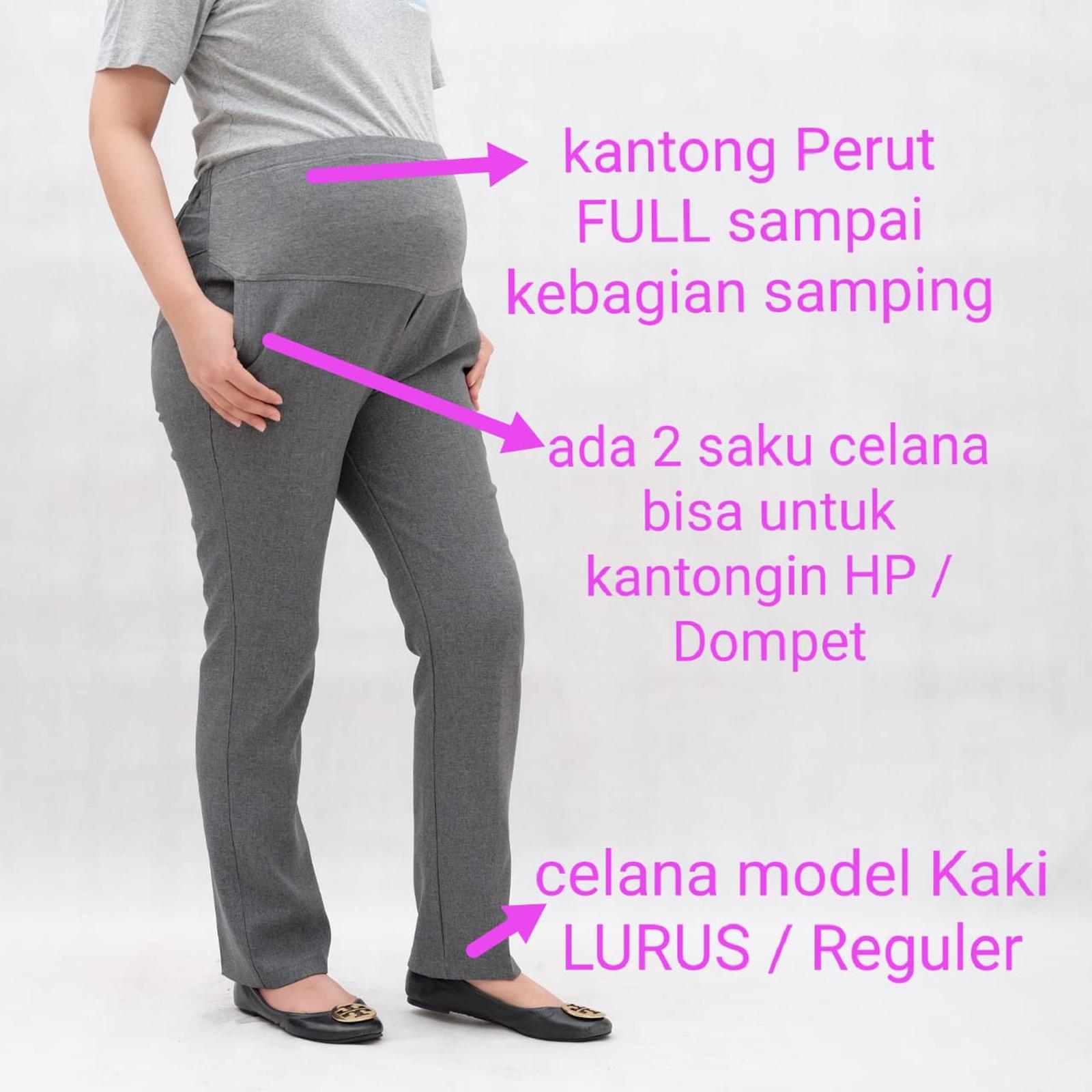Dilengkapi fitur kaos perut dari bahan kaos halus yang lembut dan adem, memberikan dukungan sempurna dari bagian depan hingga samping pinggang. Dilengkapi juga karet dan kancing pengatur yang dapat menyesuaikan dengan perkembangan perut, cocok digunakan mulai dari kehamilan 3 hingga 9 bulan. Dengan model kaki lurus yang elegan dan dua saku di bagian depan, celana ini sangat cocok untuk ke kantor, acara formal, atau pesta. Jahitannya rapi dan kuat ala butik, menjamin kualitas yang tahan lama.
