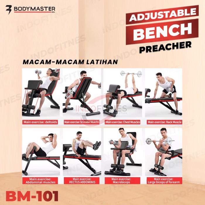 Bench BM-101 dirancang untuk latihan lengkap di rumah dengan fitur: