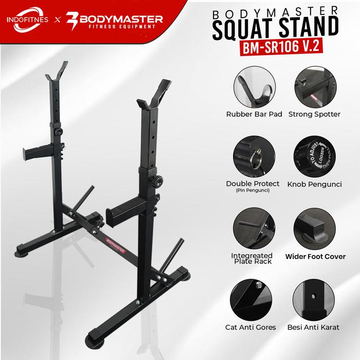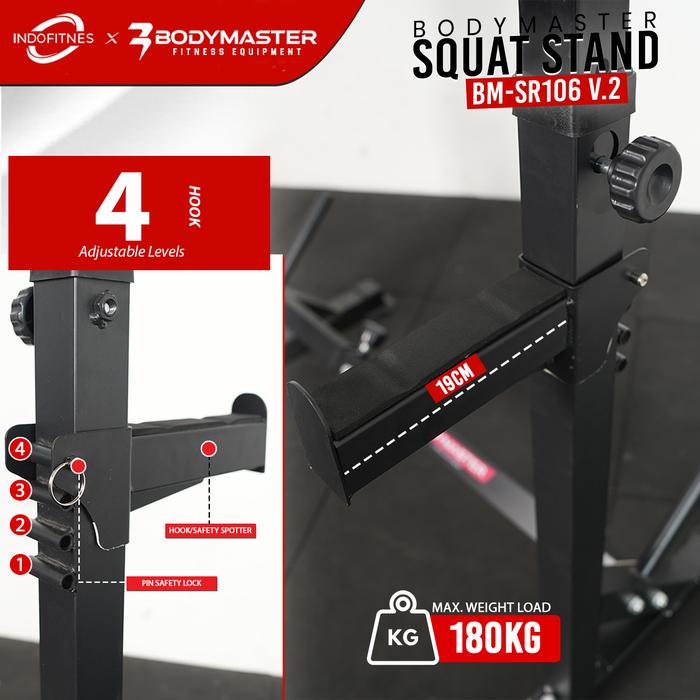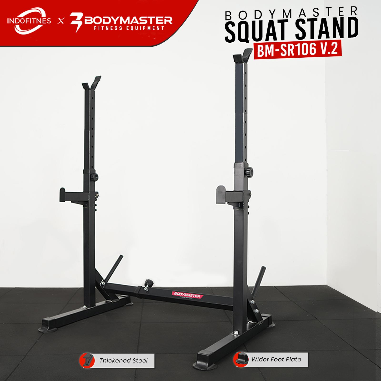 Tingkatkan intensitas dan keamanan latihan kekuatan Anda dengan Bodymaster Squat Stand BM-SR106 V2. Rak barbel yang dirancang khusus untuk mendukung berbagai gerakan compound, seperti squat dan bench press, dengan stabilitas maksimal.