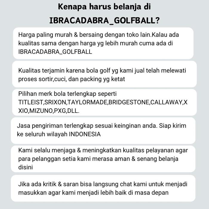 - Waspada terhadap penjual yang menggunakan foto/deskripsi kami tanpa izin. Pastikan Anda membeli dari toko resmi IBRACADABRA GOLFBALL.