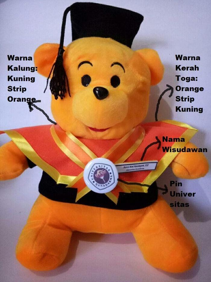 | Ukuran: 40 cm (Jumbo) | Bahan halus dan lembut | Nama & gelar wisudawan |