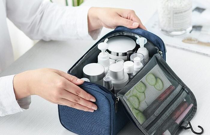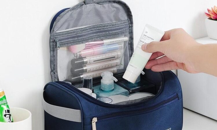 Toiletries Bag: Sebuah tas atau wadah yang digunakan khusus untuk mengorganisir dan membawa barang-barai keperluan pribadi seperti pasta gigi, sikat gigi, sabun, sampo, serta produk kosmetik dan perawatan kulit lainnya. Fungsinya adalah untuk memisahkan barang-barang ini dari pakaian dan barang bawaan lainnya agar tetap rapi, bersih, dan mudah ditemukan.