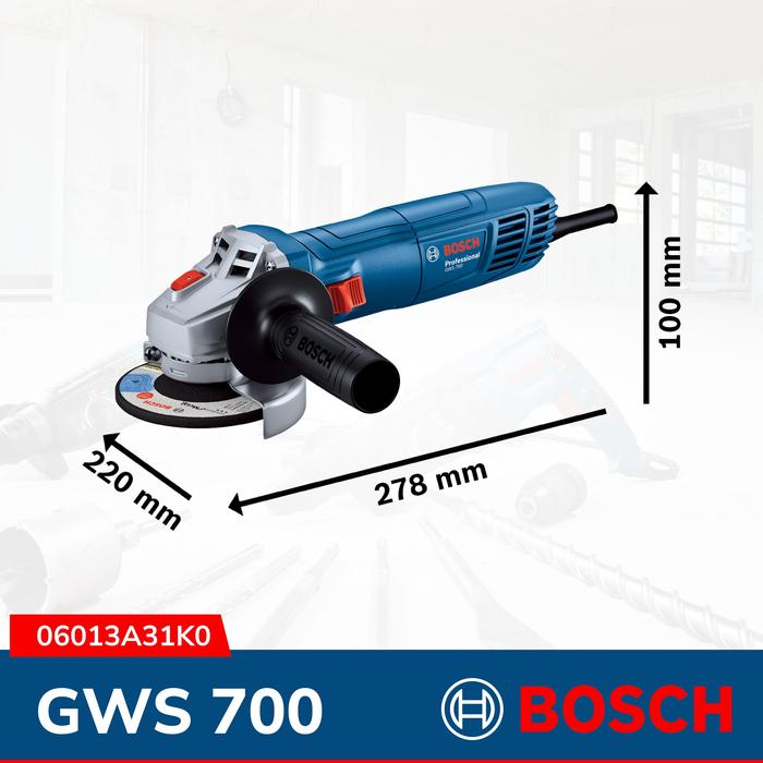 Raih hasil yang sempurna dan efisien untuk setiap proyek Anda dengan Bosch GWS 700. Ditenagai motor 700 Watt bertenaga tinggi, gerinda tangan ini memberikan performa optimal dengan kecepatan tanpa beban 12.000 rpm untuk memotong maupun menggerinda berbagai material seperti logam, batu, dan kayu dengan gesekan maksimal.
