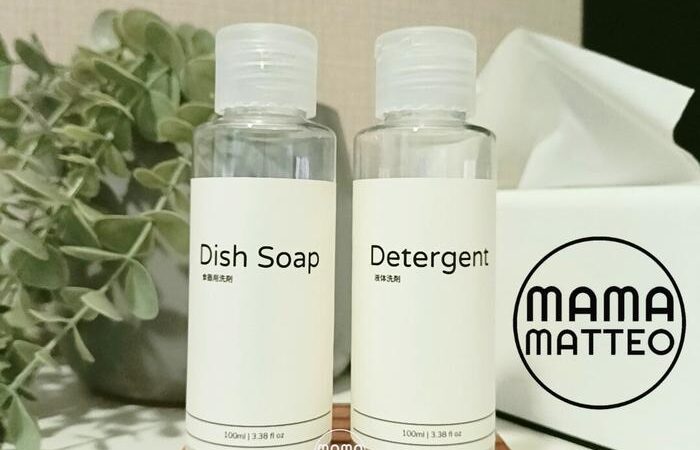 Varian Label StickerTersedia 4 pilihan label: Body Wash, Shampoo, Dish Soap (Sabun Piring), Detergent (Deterjen).