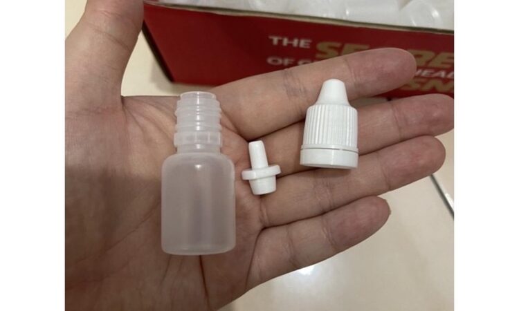 • Dropper: Bagian penutup botol yang berbentuk kerucut dan berfungsi untuk meneteskan cairan. Terdiri dari pipet (bagian yang dipencet) dan tutup ulir.