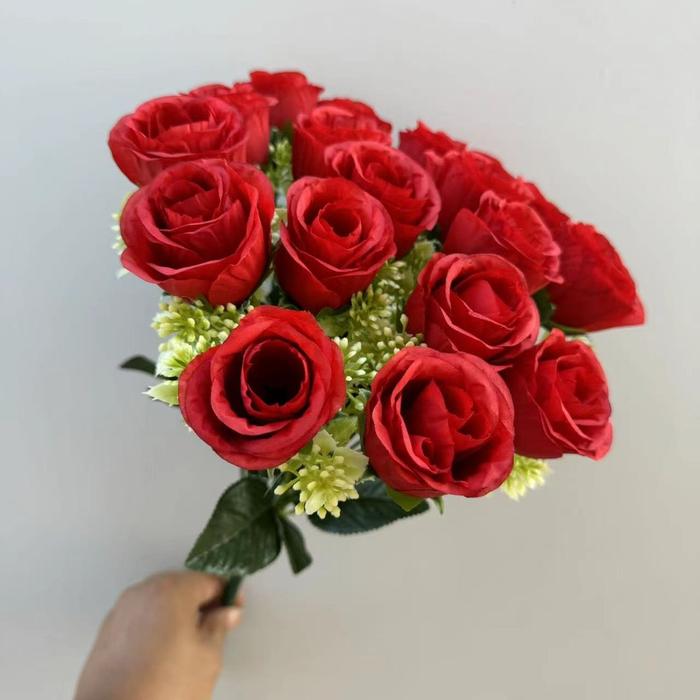 Hadirkan keindahan yang tak pernah layu dengan Bouquet Bunga Palsu P101 Korea. Terdiri dari 18 cabang bunga mawar artifisial berkualitas tinggi, buket ini dirancang untuk memberikan sentuhan elegan dan warna ceria dalam ruangan Anda tanpa perawatan khusus.