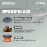 Tingkatkan kenyamanan ruangan Anda dengan Bowin Parfum Mobil Organic Can. Dibuat dari serat kayu alami yang aman dan ramah lingkungan, produk ini memberikan wewangian yang kuat serta tahan lama hingga 60 hari tanpa harus khawatir bocor. Aromanya menyegarkan, tidak membuat pusing atau mual, sehingga cocok untuk berbagai kebutuhan.