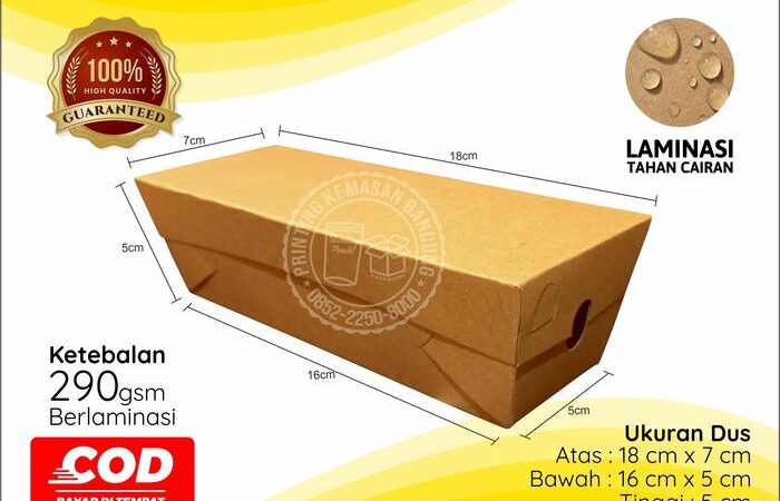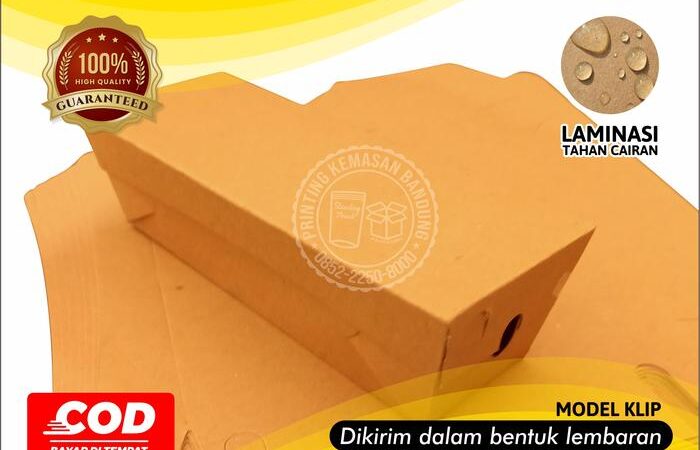 • Laminasi PE DOFF: Lapisan polyethylene (PE) bertekstur doff (tidak mengilap) pada bagian dalam box yang berfungsi sebagai pelindung dan berstandar food grade, sehingga aman untuk langsung bersentuhan dengan makanan.