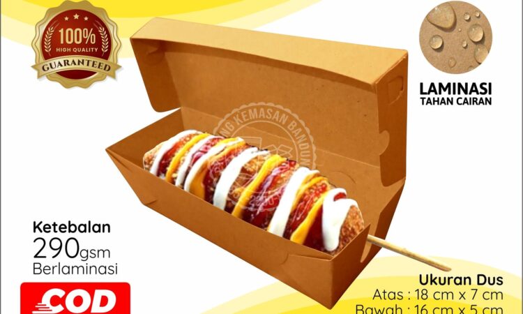 Dapatkan kemasan makanan berkualitas tinggi untuk produk corndog, sosis bakar, atau sate taichan Anda. Dijual dalam satuan dus berisi 25 pcs, box ini dilengkapi dengan lubang tusukan stik di samping, memudahkan penyajian dan meningkatkan kenyamanan pelanggan.