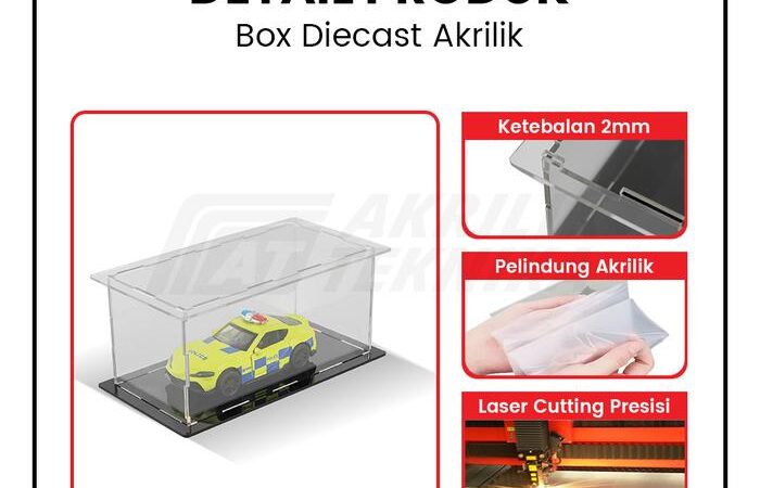 𝗔𝗸𝗿𝗶𝗹𝗶𝗸 𝗧𝗲𝗸𝗻𝗶𝗸𝗮 merupakan produsen dan pabrikasi produk akrilik terkemuka di Indonesia, yang telah dipercaya oleh distributor dan toko-toko di seluruh negeri. Kami menyediakan box display akrilik berkualitas tinggi untuk koleksi diecast skala 1:64 dengan presisi laser cutting dan material bening 2 mm.