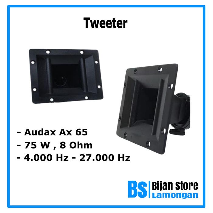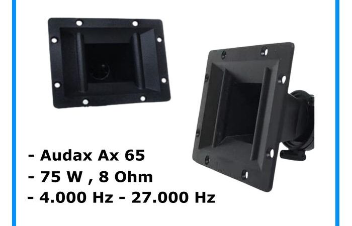 | Tweeter Audax AX65 | Respons frekuensi sangat lebar (4.000 Hz – 27.000 Hz) dengan sensitivitas tinggi 94 dB. Suara high-frequency menjadi sangat detail dan nyaring tanpa distorsi. |