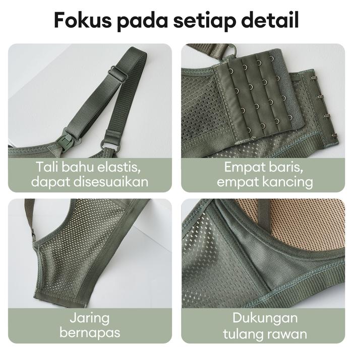 | Tanpa Kawat | Desain lembut tanpa kawat, mengurangi tekanan pada payudara saat menyusui. |