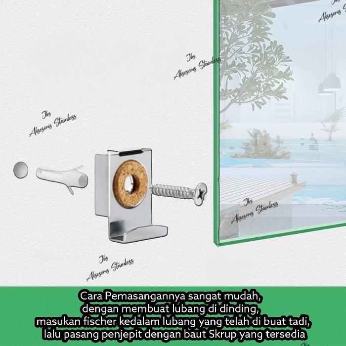 | Aplikasi | Untuk menjepit dan menggantung cermin dinding (biasanya di atas westafel) ke tembok. |