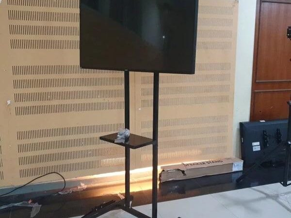 - Mudah Dipindahkan: Sistem roda memudahkan Anda memindahkan TV ke sudut ruangan mana pun.