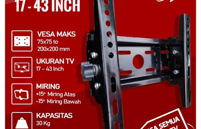 VESA: Standar internasional untuk pola jarak lubang baut di belakang TV atau monitor. Digunakan untuk memastikan kompatibilitas antara bracket dan perangkat TV Anda. Diukur dalam sentimeter (cm) untuk panjang dan lebar (contoh: 20×20 cm).
