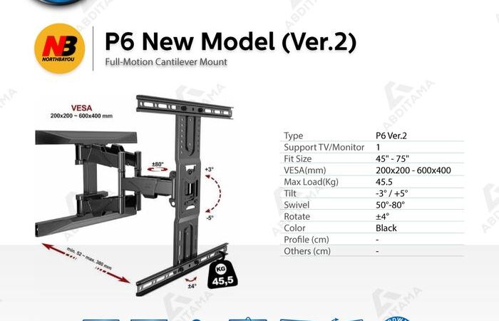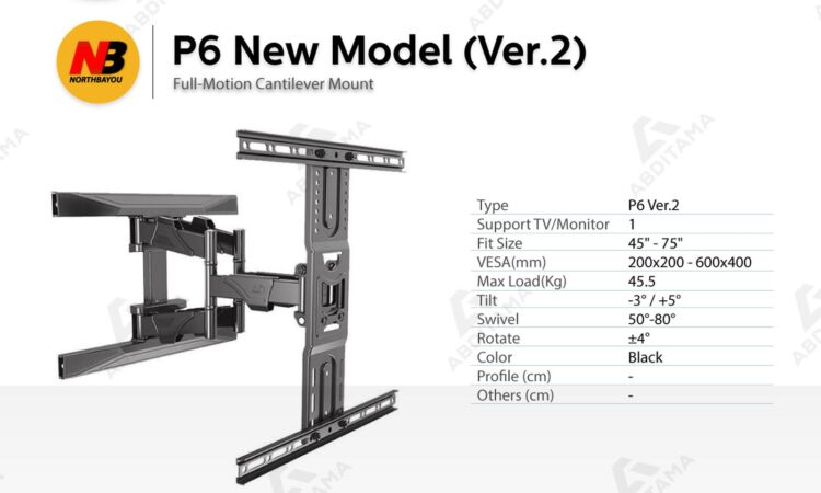 Bracket TV Monitor LED LCD North Bayou NB P6 NBP6 45″-75″ Baru
