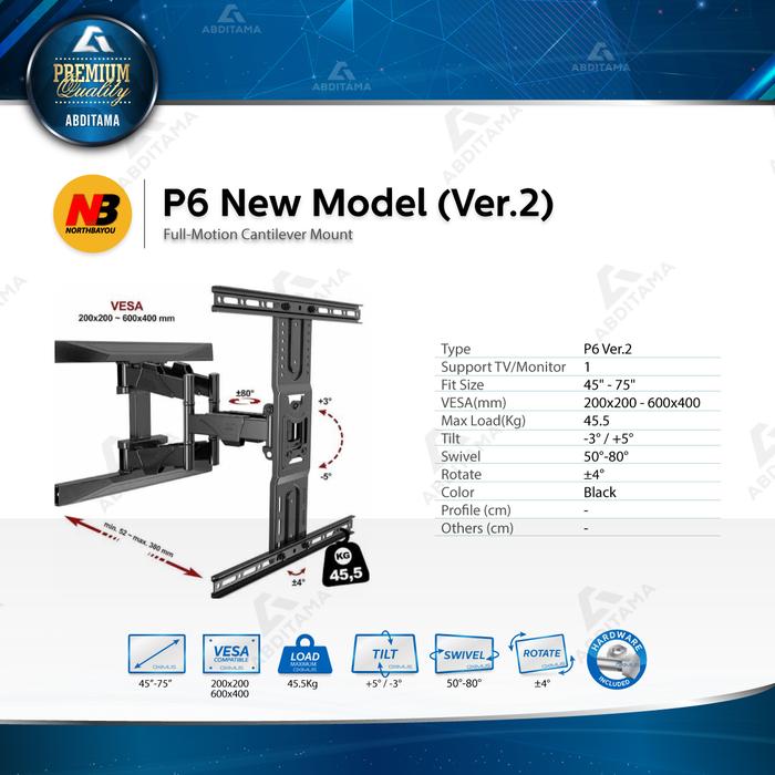Bracket TV Monitor LED LCD North Bayou NB P6 NBP6 45″-75″ Baru