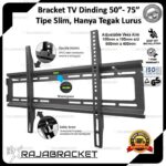 | Varian 3 (40″ – 75″) | Slim (Tegak menempel dinding) | 50 kg | 100×100 – 600×400 mm | Plat: 62×14 cm | Sekrup Fischer, baut TV lengkap, panduan |