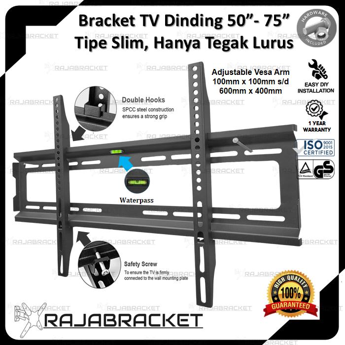 Terbuat dari material besi full, bracket ini dijamin KUAT dan TAHAN LAMA. Dirancang universal untuk semua merek TV LED, LCD, dan Plasma. PASTI COCOK untuk TV Anda! Setiap pembelian dilengkapi dengan hardware lengkap untuk pemasangan yang mudah dan aman.