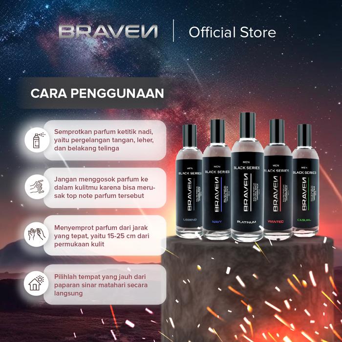 Wujudkan aura kepemimpinan dan daya pikat yang tak terbantahkan dengan Braven Black Legend. Parfum ini menghadirkan komposisi aroma segar, spicy, dan citrus yang maskulin serta berkelas. Didesain khusus untuk pria dominan yang berani mengekspresikan jati dirinya.
