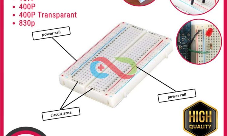 | DEV-0002 | Breadboard 830P | 830 titik | 165×55×8.5 mm | Plastik ABS |