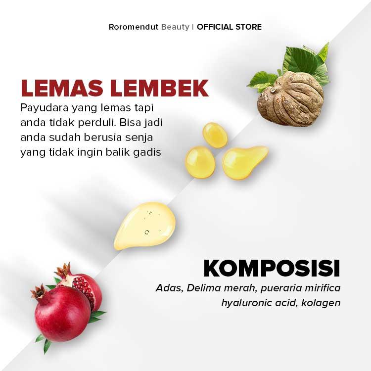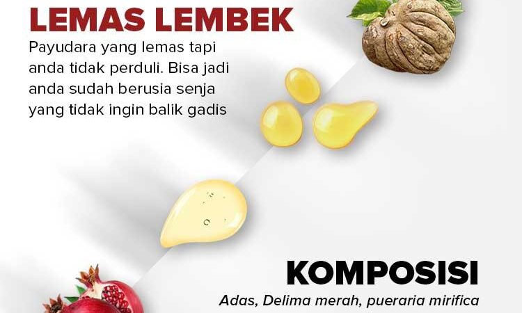 Komposisi: Adas, Delima, Pueraria mirifica, Hyaluronic Acid, Marine Collagen.