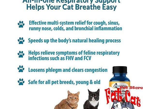 Breathe Easy for Cats diformulasikan khusus untuk mengatasi berbagai masalah pernapasan pada kucing. Formula alami ini bekerja efektif meredakan gejala flu, pilek, bersin-bersin, suara ngorok, hingga infeksi saluran pernapasan atas dan bronkial. Membantu kucing kesayangan Anda kembali bernapas dengan lega dan nyaman.