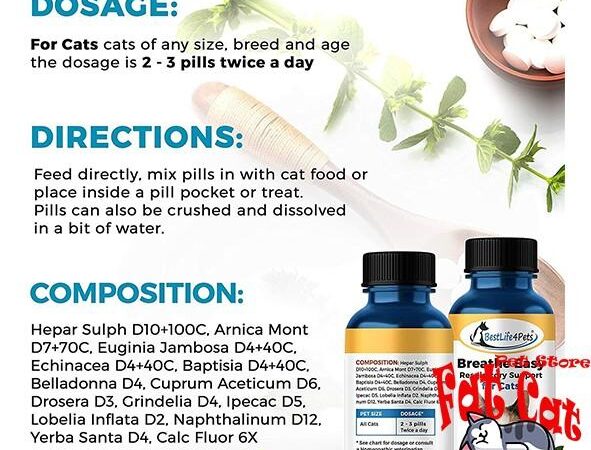 | Meringankan gejala batuk, bersin, dan mengi | Kucing Besar: 4 pil per hari |