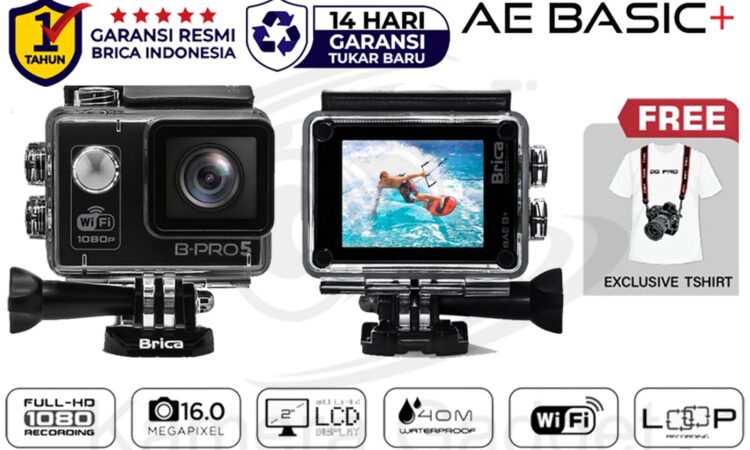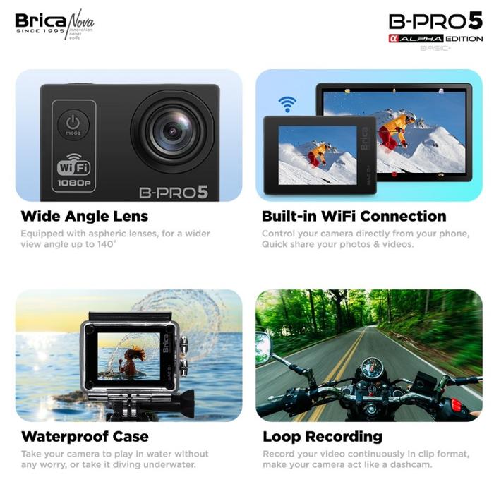 Tempan partner petualangan terbaik Anda! Brica B-pro 5 Alpha Edition Basic+ adalah action camera canggih yang siap mengabadikan setiap momen menakjubkan dengan kualitas tajam. Versi terbaru ini sudah dilengkapi WiFi untuk kontrol mudah via smartphone, merekam video jernih Full HD 1080p, dan menggunakan koneksi USB Type-C yang lebih praktis. Dilengkapi waterproof case yang tahan hingga kedalaman 40 meter dan mount lengkap untuk berbagai kebutuhan.