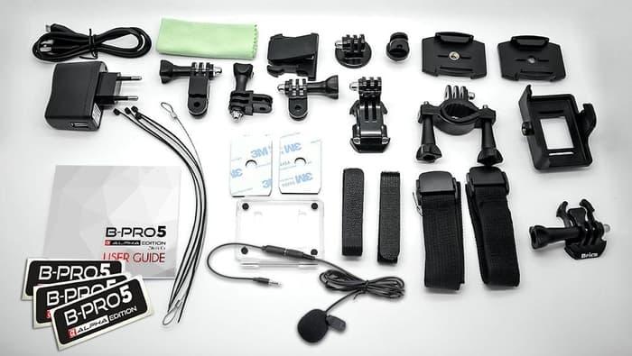 1 Unit Kamera, Waterproof Casing, Handlebar Mount, 3 Pivot Arms, 2 Quick Release Mountings, Tripod Mount, 2 Adhesive Base Mounts, Charger Unit, Baterai 1000mAh, Casing Skeleton Backdoor, 2 Strap, 2 Velcro Strap, Kabel USB, Buku Manual, 4 Cable Ties, Metal Wire, 2 Extra Adhesive, Soft Cloth, 3pcs Sticker, Microphone (edisi baru), Kabel (edisi baru), Extension Cable (edisi baru), Buku Manual, Kartu Garansi.