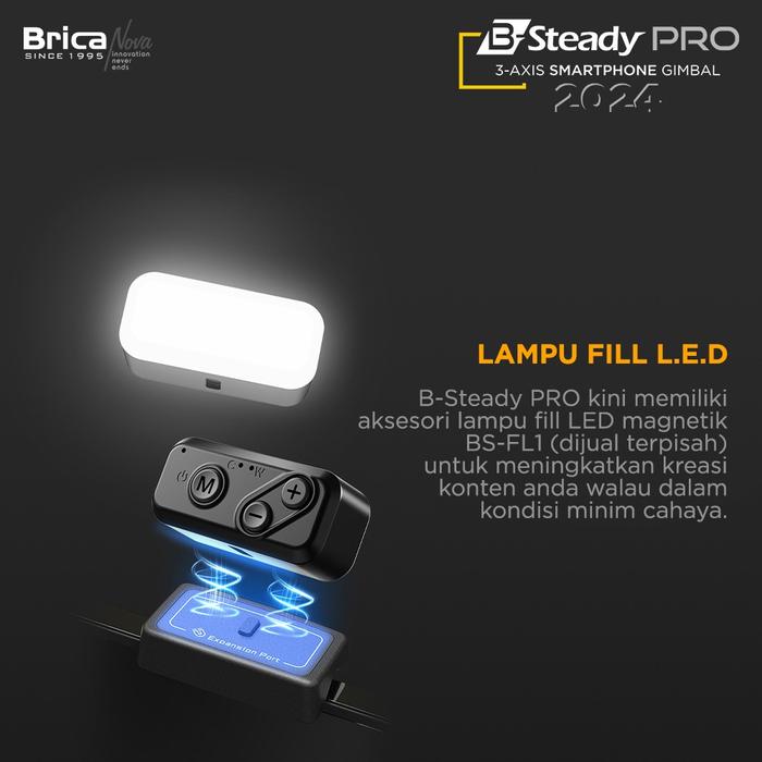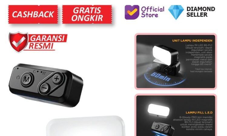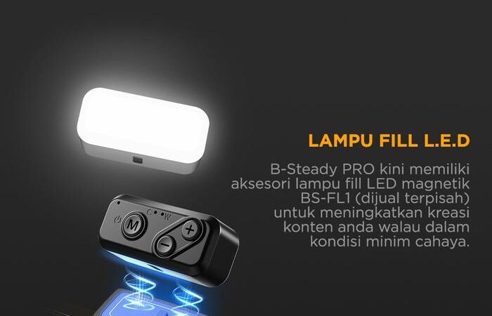 Lampu ini dilengkapi dengan sistem pemasangan magnetik yang kuat, memungkinkan Anda dengan mudah menempelkannya di bagian depan atau belakang gimbal B-Steady Pro Anda sesuai kebutuhan sudut pengambilan gambar. Tak hanya sebagai aksesori, BS-FL1 juga berfungsi penuh sebagai lampu mandiri (standalone). Cukup tempelkan pada permukaan logam apa saja, dan ia siap menjadi sumber cahaya portabel Anda.