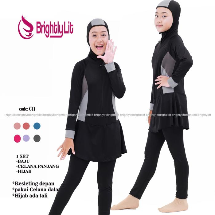 Tampil percaya diri dan stylish saat berenang dengan BrightlyLit Baju Renang Muslimah untuk anak. Dirancang khusus untuk anak perempuan dengan desain syar’i yang menutup aurat secara sempurna, terdiri dari atasan, celana panjang, dan hijab dalam satu set lengkap. Bahan spandek berkualitas tinggi dengan elastisitas 5-10 cm memastikan kenyamanan maksimal dan kebebasan bergerak.