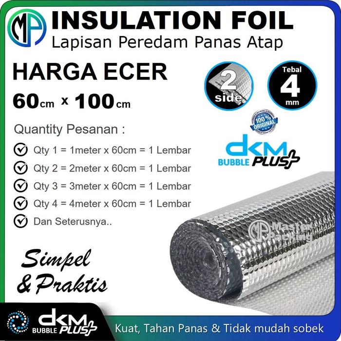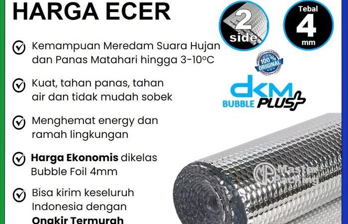 - Bubble Metalizing Foil: Material insulasi berbentuk gelembung udara yang dilapisi aluminium di kedua sisi, berfungsi memantulkan panas dan meredam suara.