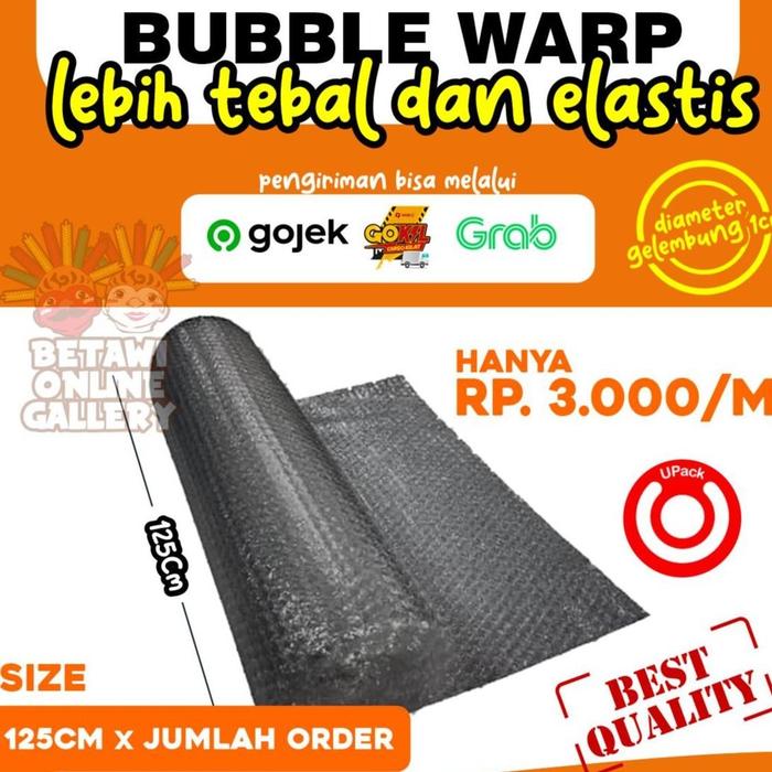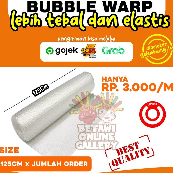 Bubble Wrap Roll Meteran dengan lebar 1,25 meter dan panjang sesuai pesanan (per meter) adalah solusi praktis untuk melindungi barang dari kerusakan selama pengiriman atau penyimpanan. Terbuat dari bahan berkualitas dengan gelembung udara (bubble) berukuran 1cm, produk ini efektif menahan benturan, goresan, dan paparan debu atau air.