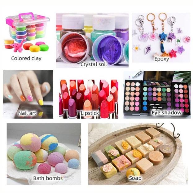 | Keunggulan | – Warna cerah dan tahan lama – Partikel halus, mudah menyatu dengan bahan lain – Aman untuk kulit (non-toxic) |